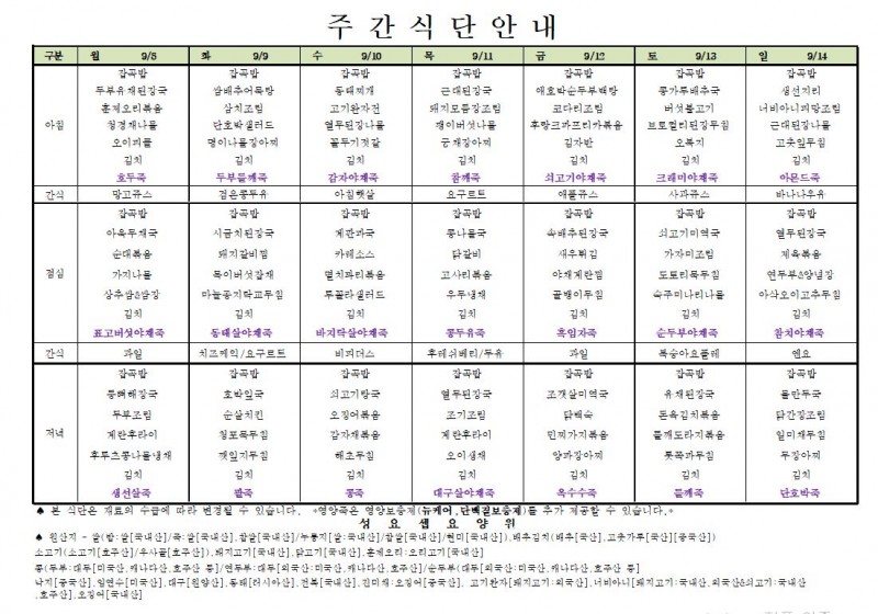 주간메뉴(9월8일~9월14일) 페이지 정보 작성자 요양원지기 작성일25-09-05 14:20 조회859회 댓글0건 관련링크 이전글 다음글 목록 본문 9월8일~9월14일 댓글목록 등록된 댓글이 없습니다. 이전글 다음글 목록