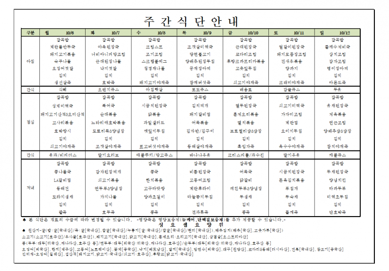 주간메뉴(10월 6일~10월 12일) 페이지 정보 작성자 요양원지기 작성일25-09-30 15:17 조회789회 댓글0건 관련링크 이전글 다음글 목록 본문 주간메뉴(10월 6일~10월 12일) 댓글목록 등록된 댓글이 없습니다. 이전글 다음글 목록