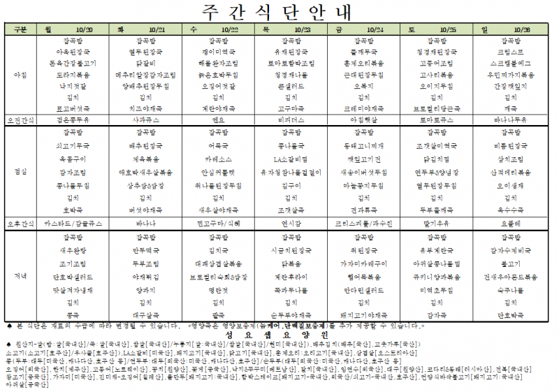 주간메뉴(10월 20일~10월26일) 페이지 정보 작성자 요양원지기 작성일25-10-15 10:17 조회718회 댓글0건 관련링크 이전글 다음글 목록 본문 주간메뉴(10월 20일~10월26일) 댓글목록 등록된 댓글이 없습니다. 이전글 다음글 목록