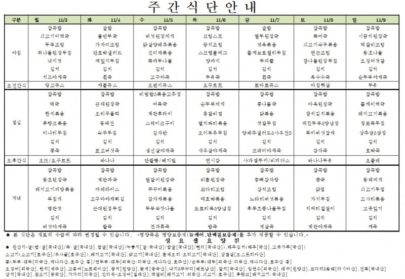 주간메뉴(11월3일~11월9일) 페이지 정보 작성자 요양원지기 작성일25-10-29 10:45 조회560회 댓글0건 관련링크 이전글 다음글 목록 본문 주간메뉴(11월3일~11월9일) 댓글목록 등록된 댓글이 없습니다. 이전글 다음글 목록